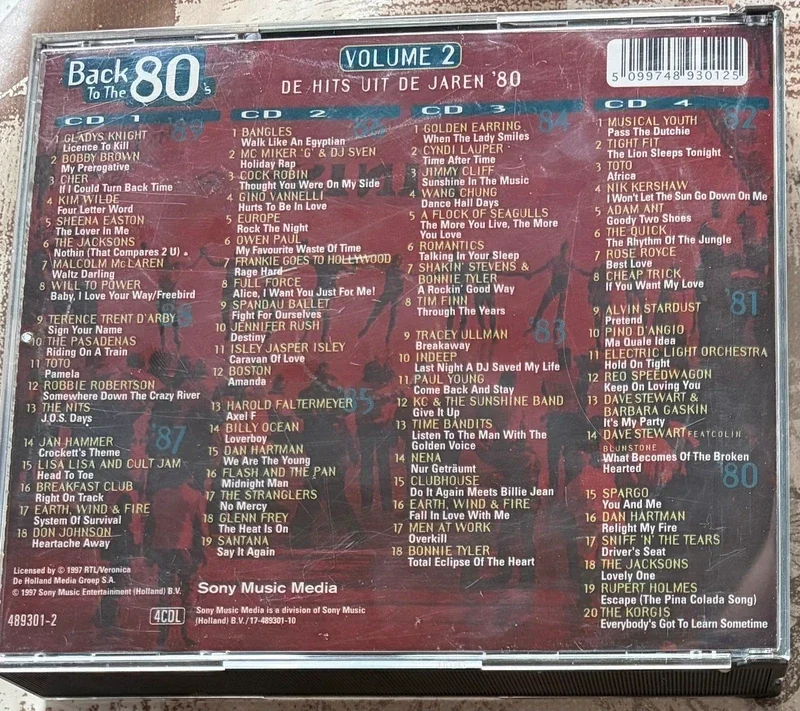 Series:Back To The 80's – Volume 2Format:4 x CD, CompilationCountry:NetherlandsReleased:Nov 18, 1997Genre:Electronic, Hip Hop, Rock, Funk / Soul, PopStyle:Pop Rock, Disco, New Wave, Synth-pop, Classic Rock, Contemporary R&B, Pop Rap